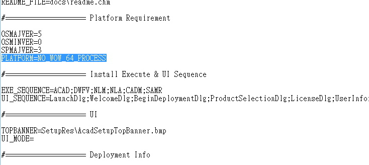 5.用記事本編輯輯 Setup.ini 找到 Platform Requirement 這個區段裡面的 Platform=NO_WOW_64_PROCESS 這行也清掉存檔